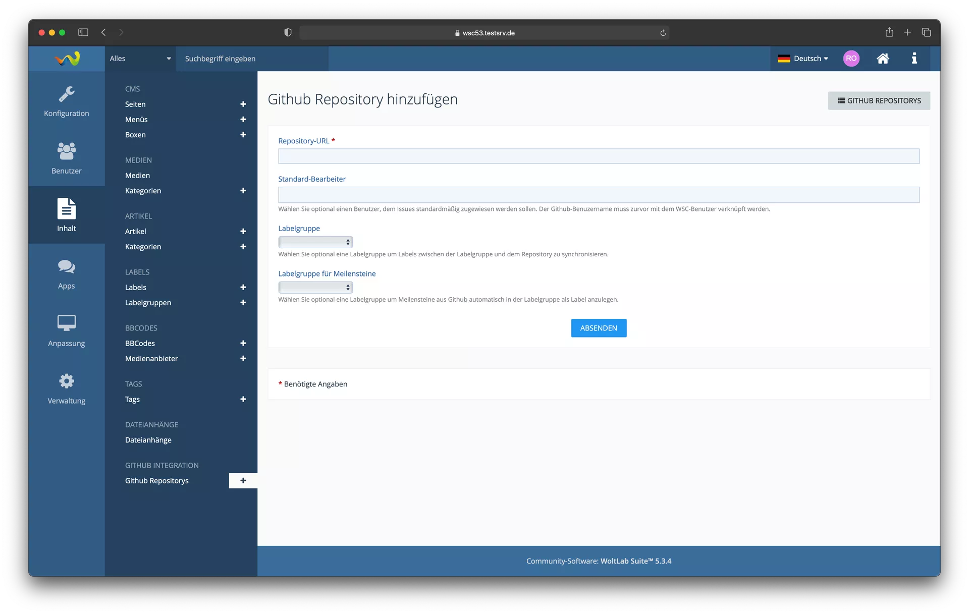 Sowohl in Github, als auch im WSC, gibt es die Möglichkeit Labels zu erstellen und diese zu verwenden. Der Label-Sync hilft beim Hinzufügen eines Repositorys automatisch die vorhandenen Github-Labels im WSC zu erstellen und anders herum automatisch die WSC-Labels in Github zu erstellen.