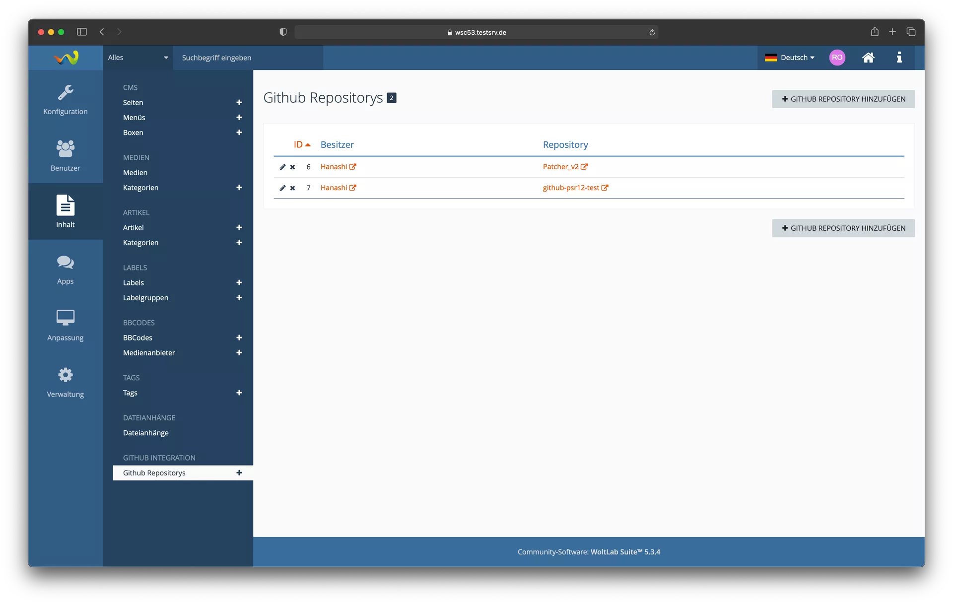 - Gehe zu ACP > Inhalt > Github Repositorys > Github Repository