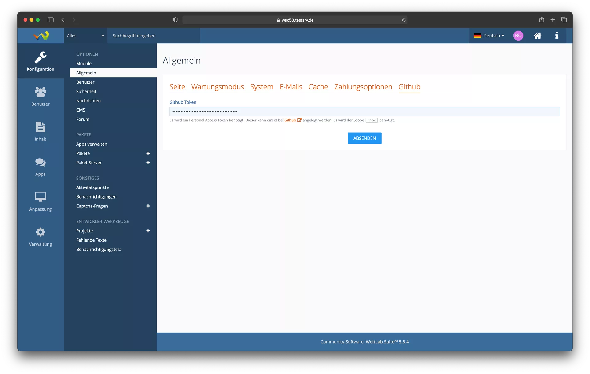 - Gehe zu ACP > Konfiguration > Allgemein > Github