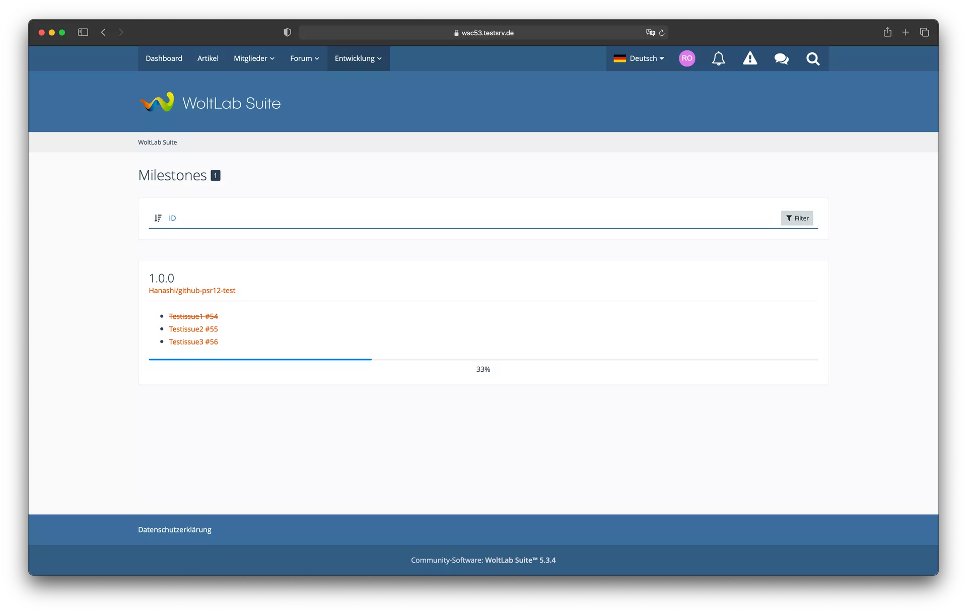 Nach dem Erstellen eines Issues, erhält der Themenersteller eine Benachrichtigung. Außerdem ist im Thema und in der Themenübersicht ersichtlich, dass dieses Thema mit einem Github-Issue verknüpft ist.