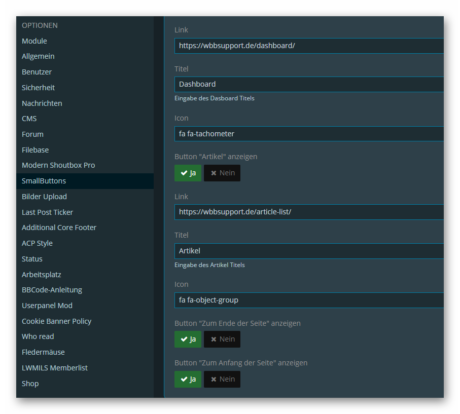 Die Buttonauswahl (ja/nein) lässt sich nach Bedarf über das ACP steuern.