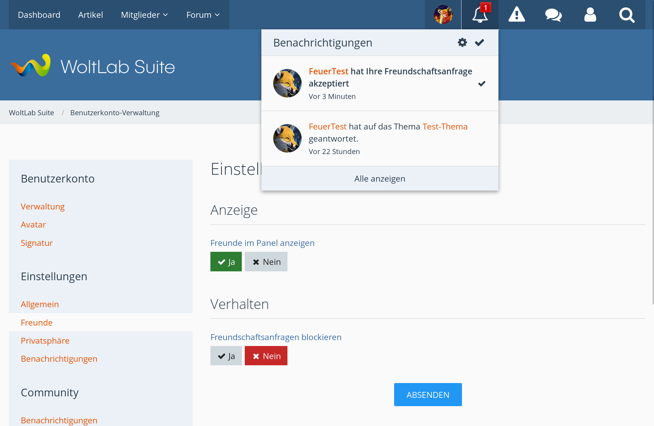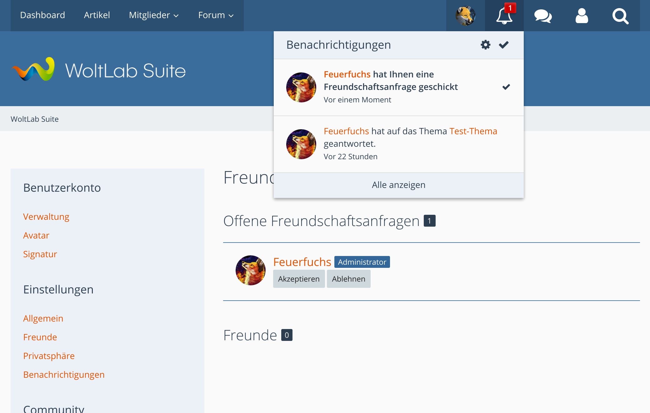 Freunde-System Woltlab Suite 5.4