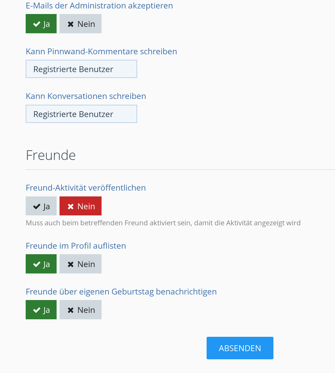 Es können auch alle eingehenden Anfragen blockiert werden, falls ein Benutzer kein Interesse an Freundschaften hat.