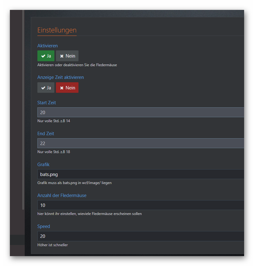 Mit diesem Plugin, habt ihr die Möglichkeit Fledermäuse durch Forum fliegen zu lassen.