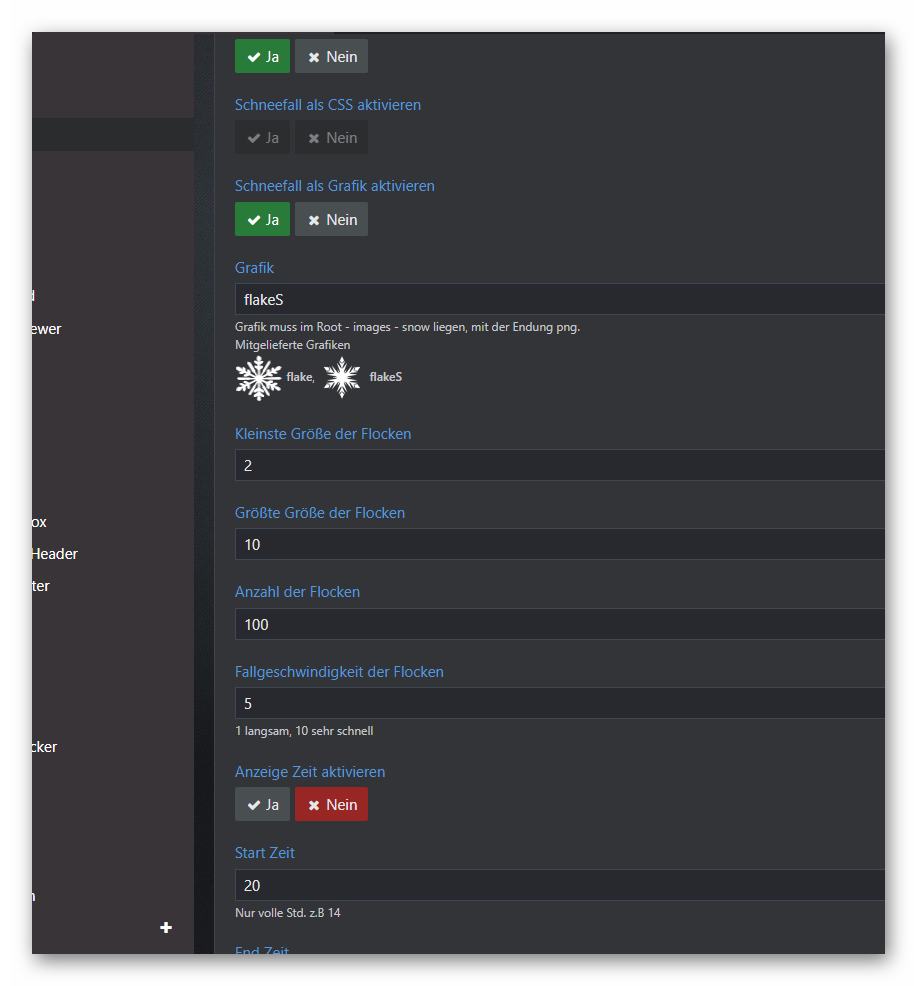 Option hinzugefügt, zum Deaktivieren der Zeit, so schneit es immer.