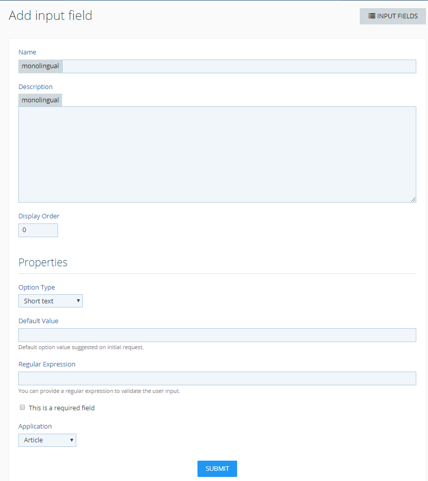 Manchmal kommt es vor, dass man mehrere Eingabefelder mit gleichem Namen, aber unterschiedlichen Funktionen erstellen muss. Um diese Felder auseinander halten zu können, kann bei der Erstellung des Eingabefeldes ein Interner und Öffentlicher Bezeichner festgelegt werden. Dazu können sie Im Titel 2 Wörter setzen, welche durch ein Semikolon getrennt werden müssen.
