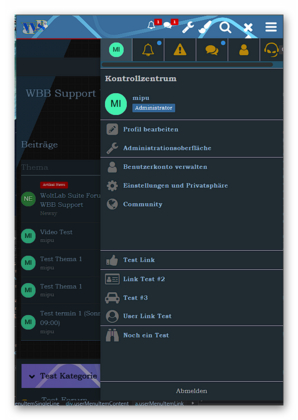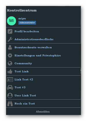 Benutzermenu | 5 zusätzliche Einträge/Links | mobil noch nicht möglich